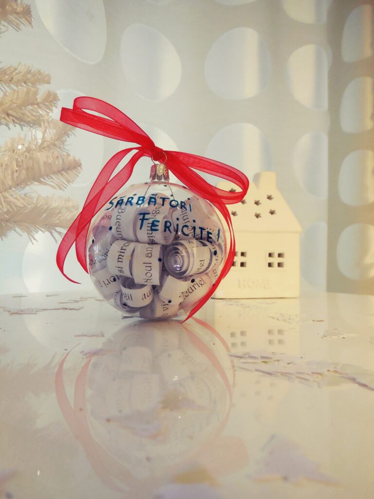 Anul acesta continuam sa realizam globuri personalizate pe care pictam sau scriem manual mesajul tau, iar inauntru adaugam ravase si transmitem urari scrise cu drag si gandurile bune, mai ales in acest an care a fost plin de neprevazut si in care cu totii avem nevoie de ganduri frumoase.